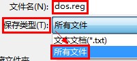 另存為”dos.reg”,然后雙擊該文件,同意導(dǎo)入到注冊表即可。