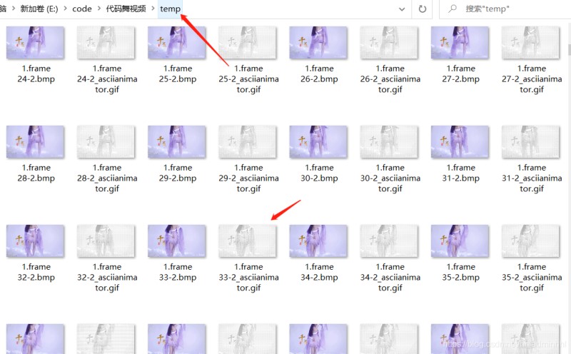 我們可以在目錄文件下找到temp文件,里面就是存儲的每個gif中每一幀轉(zhuǎn)換的ASCII的gif。下面我們就是需要處理這些ASCII的gif,可以將文件夾拷貝到python項目下面。