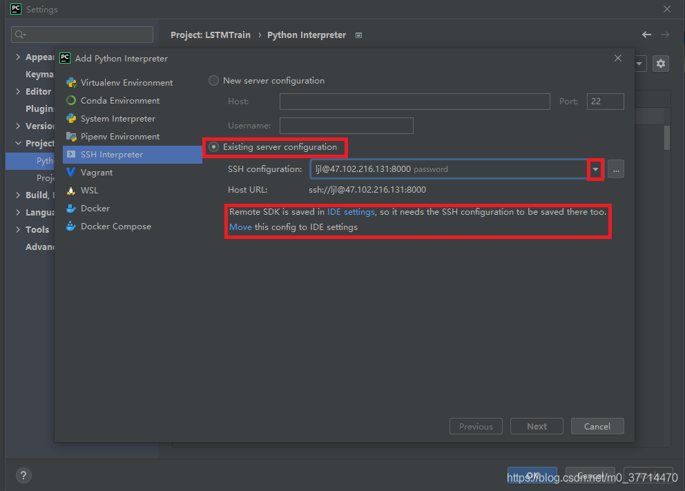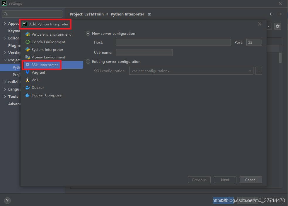 (3)在彈出的 “Add Python Interpreter” 窗口中,選擇 “SSH Interpreter”