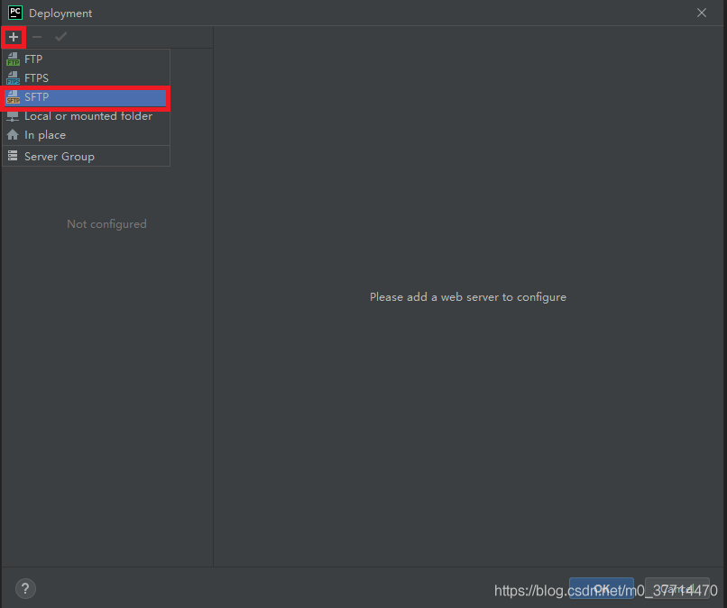 (1)在彈出的 “Deployment” 窗口單擊左上角的 “+” ,選擇創(chuàng)建一個 SFTP