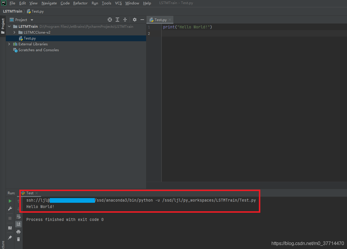 (1)在本地新建一個Python文件 Test.py,讓其輸出 Hello World,發(fā)現(xiàn)輸出成功