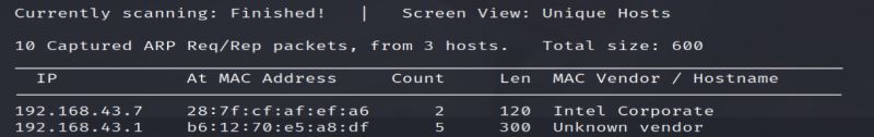 arpspoof -i eth0 -t 192.168.43.7 192.168.43.1