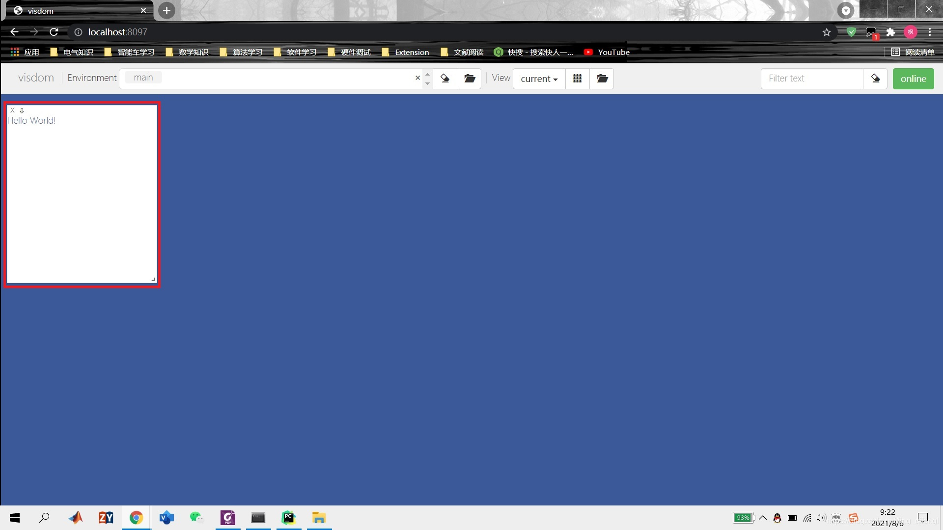 按照提示,在瀏覽器中輸入http://localhost:8097就可以訪(fǎng)問(wèn)visdom了。初始界面如下圖所示,是一個(gè)沒(méi)有任何視窗的main環(huán)境。