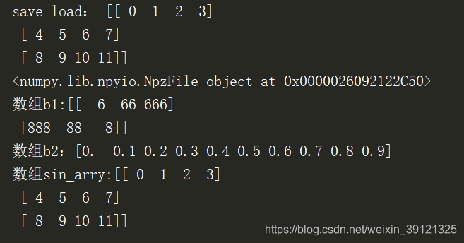 - load()自動識別npz文件,并且返回一個類似于字典的對象,可以通過數(shù)組名作為鍵獲取數(shù)組的內容