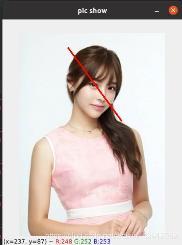 參數(shù)解析:(圖像矩陣,直線起始坐標, 直線終止坐標、顏色、線條厚度)