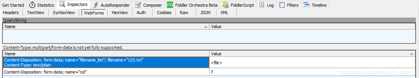 由于谷歌瀏覽器無法查看上傳文件時http請求的參數,故使用fiddler來進行抓包