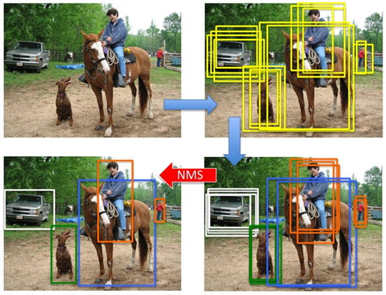 NMS在計(jì)算機(jī)視覺(jué)領(lǐng)域有著非常重要的應(yīng)用,如視頻目標(biāo)跟蹤、數(shù)據(jù)挖掘、3D重建、目標(biāo)識(shí)別以及紋理分析等。