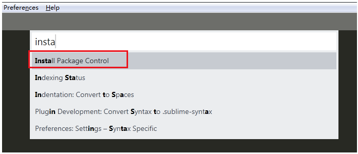 直接使用組合鍵ctrl+p,在輸入框輸入Install Package Control回車。