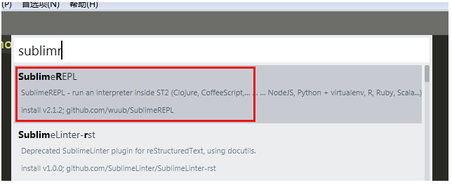 點擊Preferences —> 選擇Package Control:Install Package —> 輸入SublimeREPL