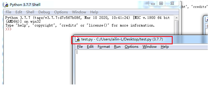 3)在新創(chuàng)建的文件(test.py)中寫Python代碼,按F5執(zhí)行,在IDLE初始窗口中查看結(jié)果。