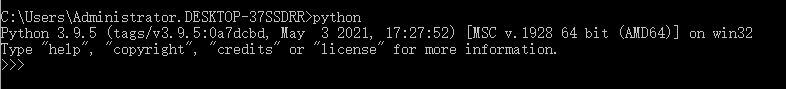 驗(yàn)證安裝是否成功 搜索中錄入cmd 打開(kāi)命令窗口 錄入python顯示一下版本號(hào)表示安裝成功
