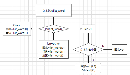 - 分支判斷l(xiāng)ist_word長(zhǎng)度,賦值國(guó)家、城市、地區(qū)。