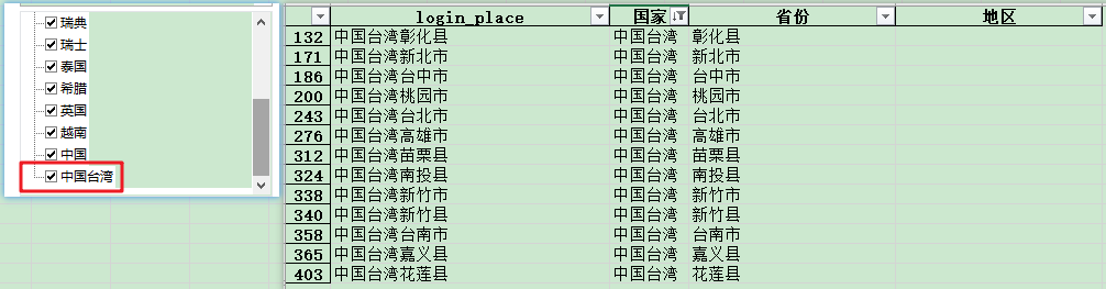 ‘國(guó)家'這一列,中國(guó)臺(tái)灣沒(méi)有拆分出來(lái)。