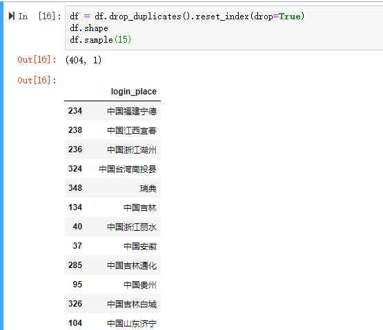 字段login_place,一共267725行記錄,隨機(jī)15條記錄如下: