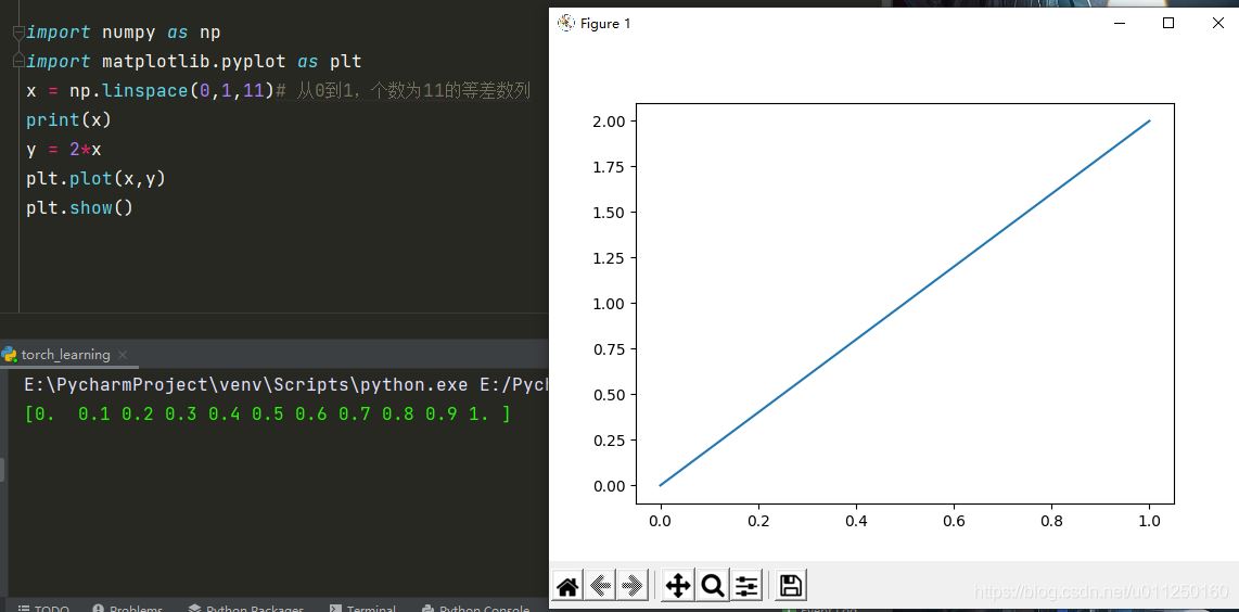 x = np.linspace(0,1,11)# 從0到1,個數(shù)為11的等差數(shù)列