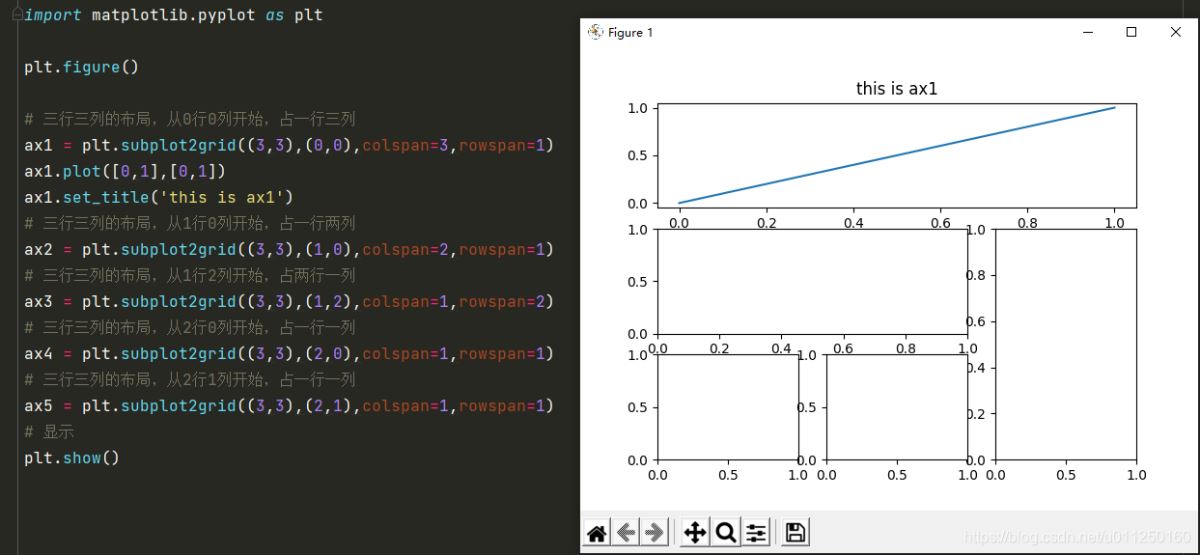 # 三行三列的布局,從1行0列開始,占一行兩列