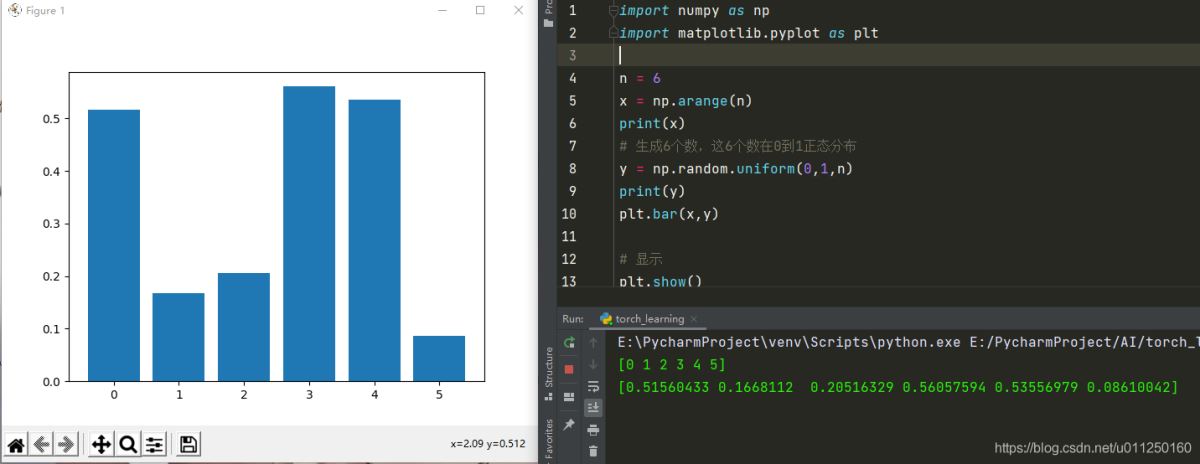 # 生成6個數(shù),這6個數(shù)在0到1正態(tài)分布