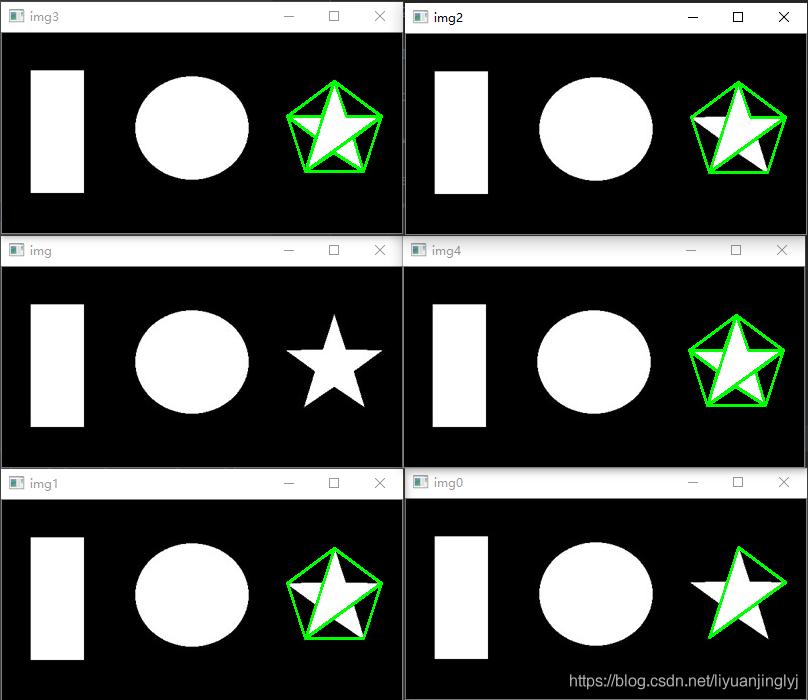 在計算輪廓時,可能并不需要實際的輪廓,而僅需要一個接近于輪廓的近似多邊形。比如矩形其實都是差不多的輪廓,都是長寬不相等且平行的四邊形,那么只要提供一個近似的輪廓,我們就可以區(qū)分形狀。
