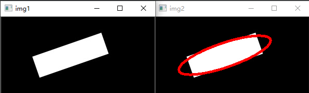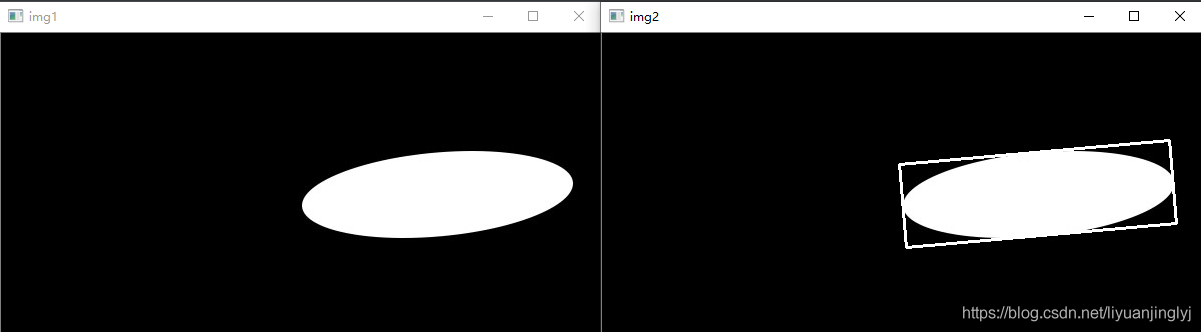 其中points參數(shù)與前文一致,而它的返回值是RotatedRect類型,這是因為該函數(shù)返回的是擬合橢圓的外接矩形,包括矩形的質(zhì)心,寬高,旋轉(zhuǎn)角度等信息,這些信息正好與橢圓的中心點,軸長度,旋轉(zhuǎn)角度一致。