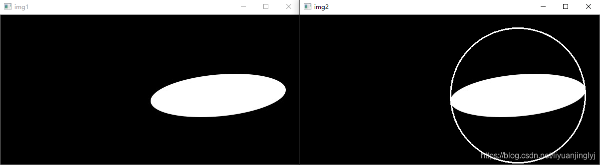 它有兩個返回值,一個是圓形的中心坐標(biāo)(x,y),一個是圓形的半徑r。下面,我們直接來繪制上面橢圓的最小包圍圓形框。具體代碼如下所示: