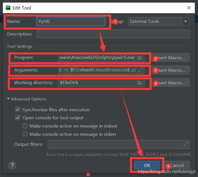 Arguments:$FileName$ -o $FileNameWithoutExtension$.py