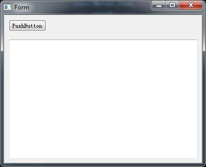 然后就會(huì)出現(xiàn)Qt Designer主界面,向Form中分別拖入一個(gè)“Push Button”和一個(gè)“Text Edit”,如下圖: