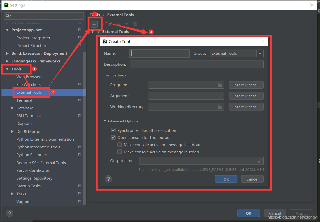然后按下圖的4個(gè)步驟,打開Create Tools對(duì)話窗: