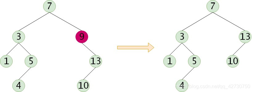 (2) 如果被刪除的結(jié)點(diǎn)只有一棵左子樹或右子樹,需要讓該結(jié)點(diǎn)的子樹成為該結(jié)點(diǎn)的父結(jié)點(diǎn)的子樹,以替代被刪除結(jié)點(diǎn)的位置;