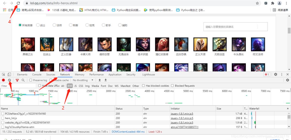 沒有搜索結(jié)果則為異步加載 3.尋找英雄url地址