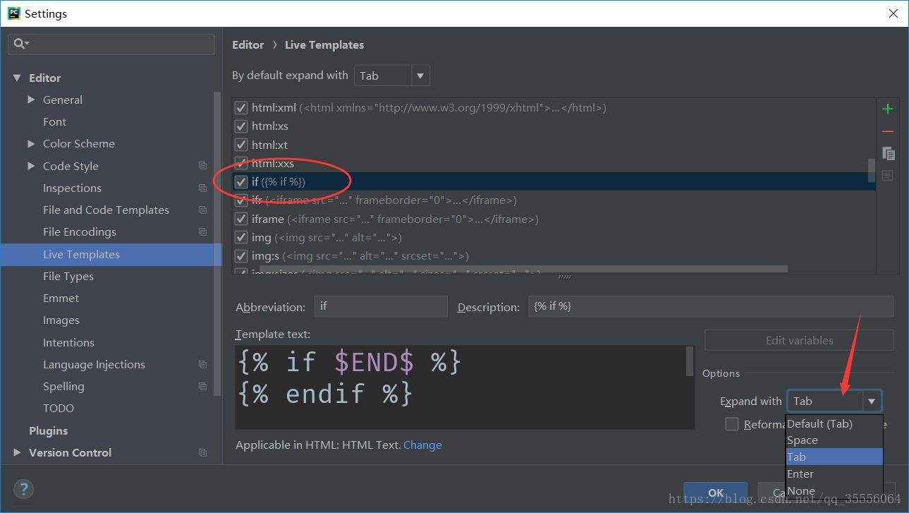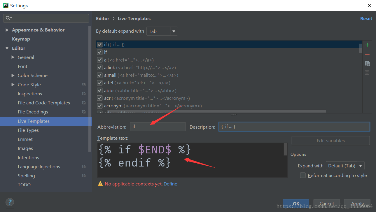 Abbreviation 處添加標簽,比如 if