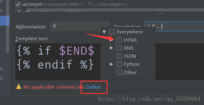 點擊下面的Define,勾選HTML。點擊 Apply