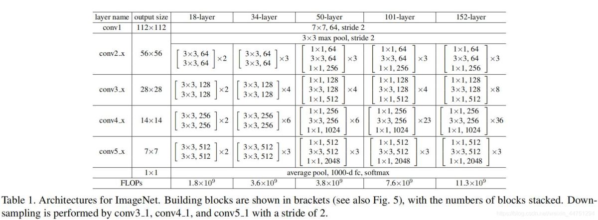 可以看見,不同層數(shù)的網(wǎng)絡(luò)結(jié)構(gòu)其實(shí)框架是類似的,不同的至少堆疊的殘差結(jié)構(gòu)的數(shù)量。