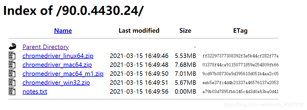 鏈接:https://chromedriver.storage.googleapis.com/index.html