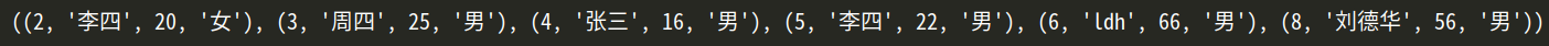 # 增加數(shù)據(jù) 劉德華56 男 數(shù)據(jù) 到 數(shù)據(jù)庫person--的info表中