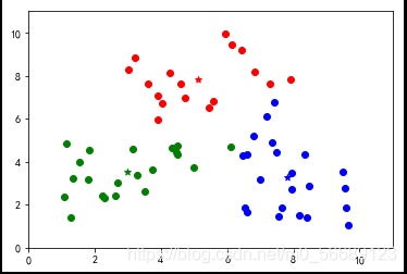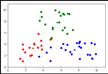 cent0 = [uniform(2,9),uniform(2,9)] #定義 K=3 個(gè)質(zhì)心,隨機(jī)賦值