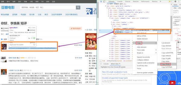 F12鍵進入開發(fā)者工具,并確定數(shù)據(jù)提取位置,copy其中的XPath路徑
