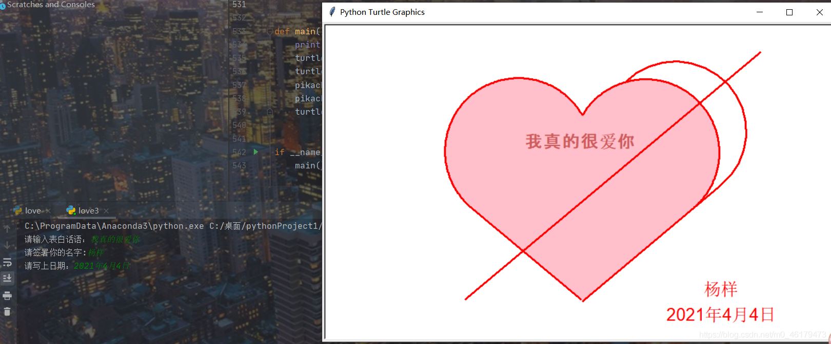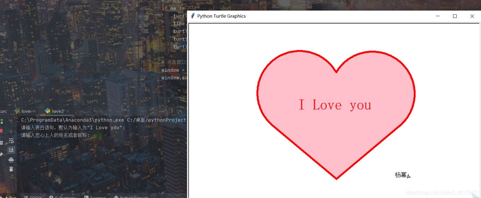 love = input('請輸入表白語句,默認(rèn)為輸入為"I Love you": ')