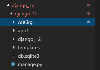在django項(xiàng)目根目錄位置創(chuàng)建scrapy項(xiàng)目,django_12是django項(xiàng)目,ABCkg是scrapy爬蟲項(xiàng)目,app1是django的子應(yīng)用