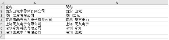 根據(jù)預(yù)先整理好的對(duì)應(yīng)關(guān)系表格自動(dòng)填寫了表格中簡(jiǎn)稱空白的一列,如果表格中存在對(duì)應(yīng)關(guān)系中不存在的公司,則在相應(yīng)的簡(jiǎn)稱位置填寫其全稱本身。如下圖中,由于表中的小米華為沒有給出其簡(jiǎn)稱,因此原樣照填。