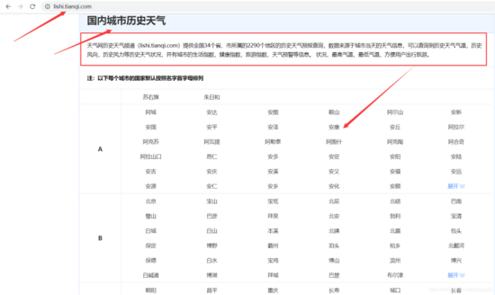 該網(wǎng)站提供了全國34個省、市所屬的2290個地區(qū)的歷史天氣預(yù)報查詢,數(shù)據(jù)來源于城市當(dāng)天的天氣信息,可以查詢到歷史天氣氣溫,歷史風(fēng)向,歷史風(fēng)力等歷史天氣狀況。