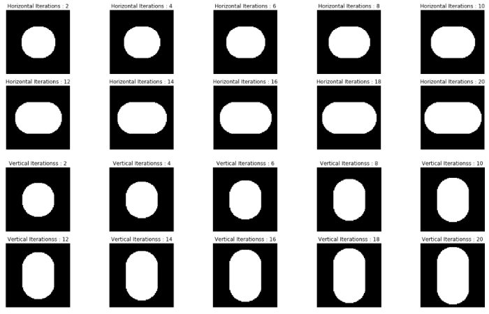 正如我們所看到的,水平和垂直的腐蝕以不同的方式影響著圖像。使用水平內(nèi)核我們得到一個(gè)垂直方向細(xì)長(zhǎng)的圓;而使用垂直內(nèi)核我們得到一個(gè)水平方向細(xì)長(zhǎng)的圓。