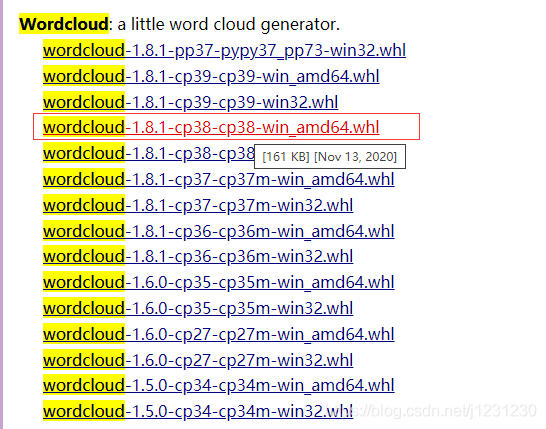 網(wǎng)上有人說直接使用 pip install 安裝 Wordcloud 會有問題,所以我們先下載到本地: