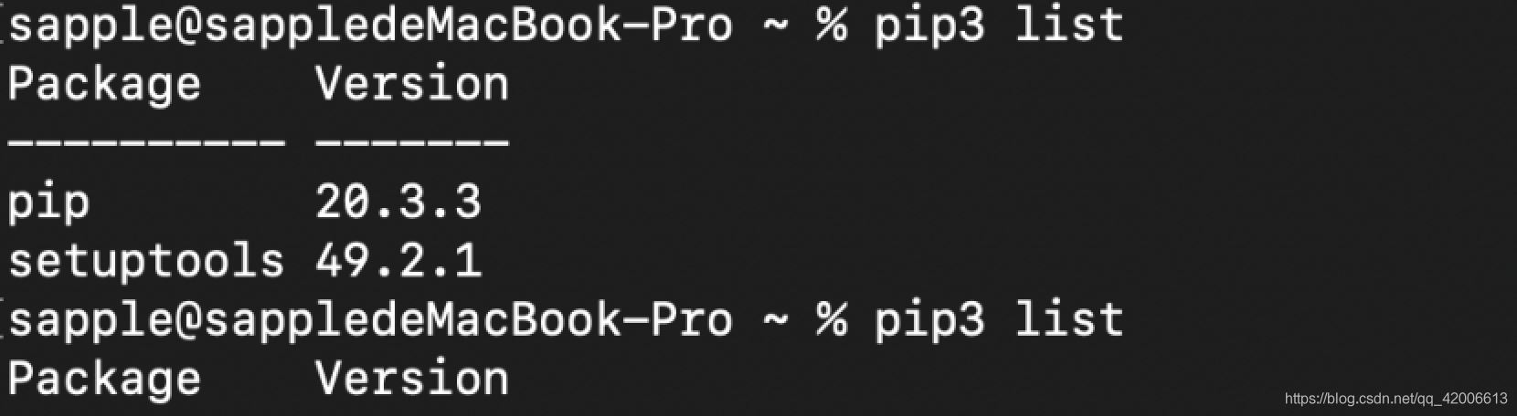 注意事項(xiàng): 由于Mac本身自帶2.7版本的python且沒有安裝pip命令,所以我們在為python3安裝包的時(shí)候要是用pip3