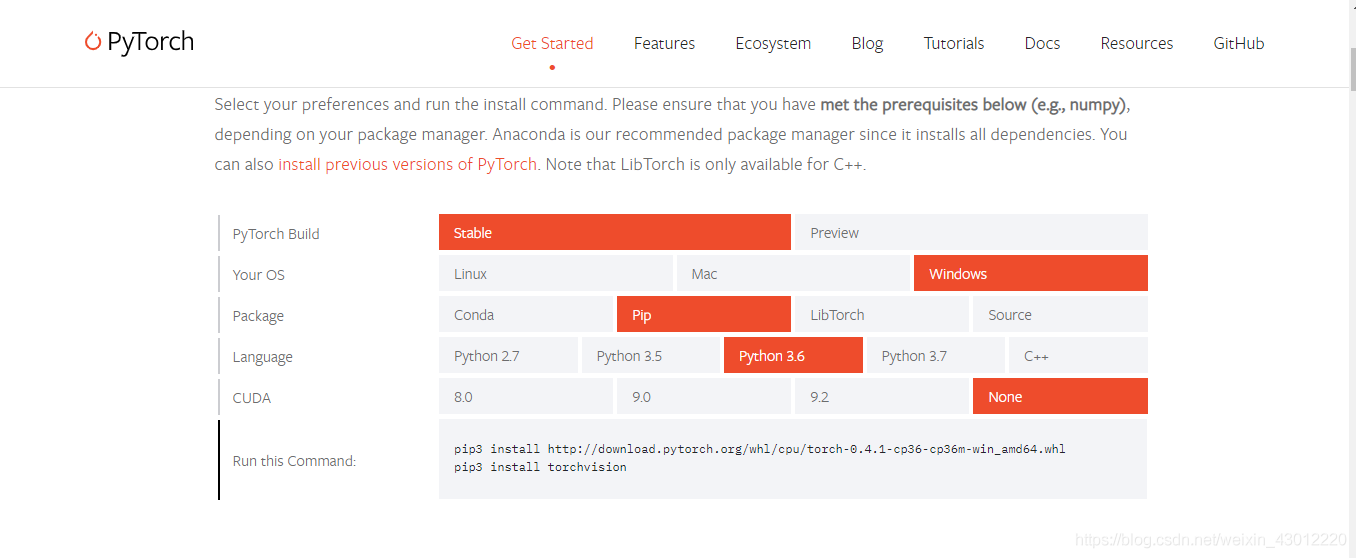 Pytorch官網(wǎng):(https://pytorch.org/)