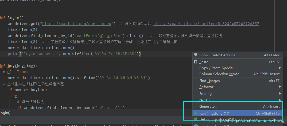④代碼會根據你輸入的時間,到達時間后,會自動進行購物車全選,進行結算下單