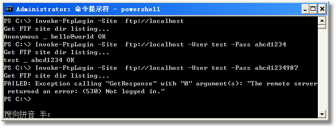 在PSNet程序集中繼續(xù)進行擴展,在$env:PSSpace/PSNet/TCPOp/下創(chuàng)建名為Invoke-FtpLogin.ps1的腳本用于在傳入指定ftp地址、用戶名和密碼后返回是否登錄成功。
