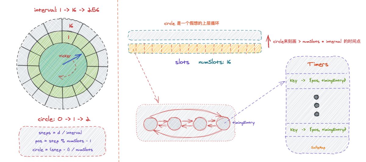 以上比較直觀展示 timingWheel 的 “時間輪”,后面會圍繞這張圖解釋其中推進(jìn)的細(xì)節(jié)。