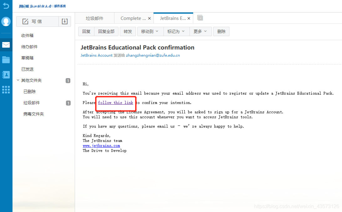 5-6分鐘后,收到相應(yīng)的郵件,點(diǎn)擊follow the click