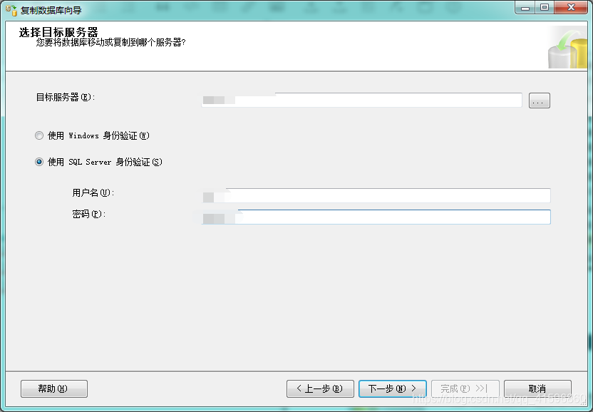 輸入源數(shù)據(jù)庫的地址使用sql server身份驗證