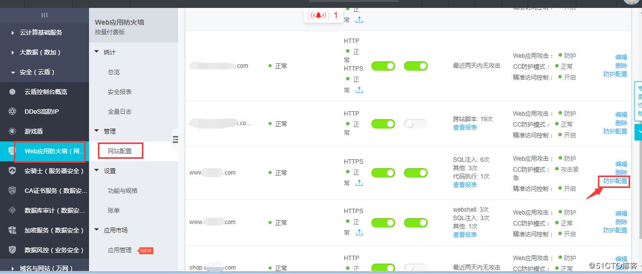 1、進入相關域名的防護配置,我們先來看下調整前的策略,如下圖: